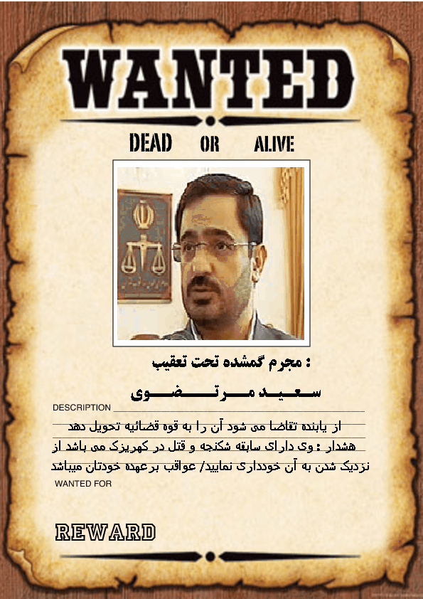 پ ن 2 : یکعدد سعید مرتضوی گم شده از یابنده تقاضا می شود آن را به قوه قضائیه تحویل دهد . قابل ذکر است که ایشان خطرناک بوده و سابقه شکنجه و قتل در کهریزک را دارد یابنده مواظب خودش باشد که عواقب کارش بر عهده خودش است .